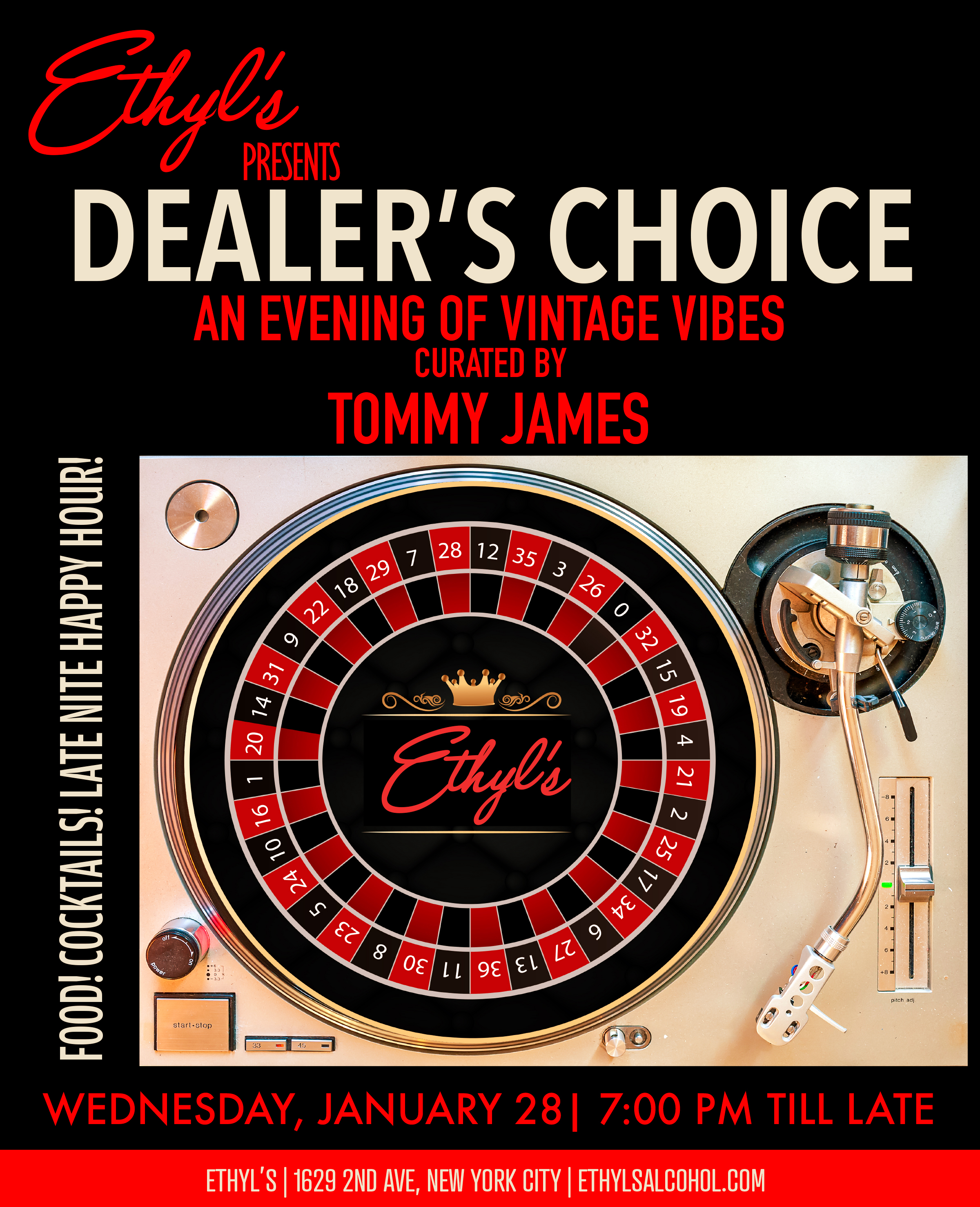 Food! Cocktails! All Nite Happy Hour!